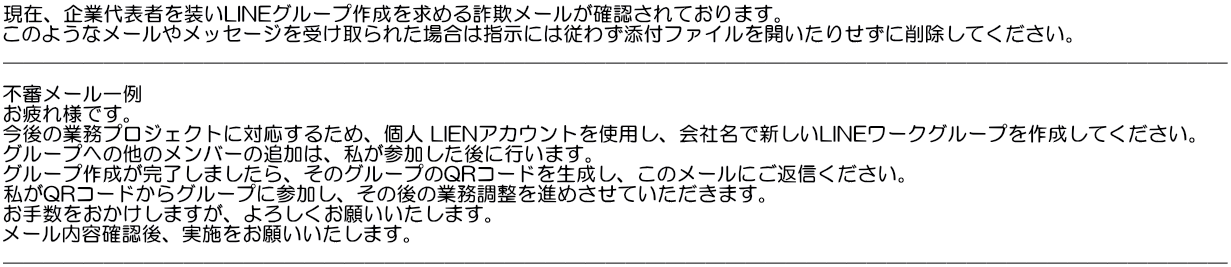 【注意喚起】企業名また代表者名を装った詐欺メールに注意してください。